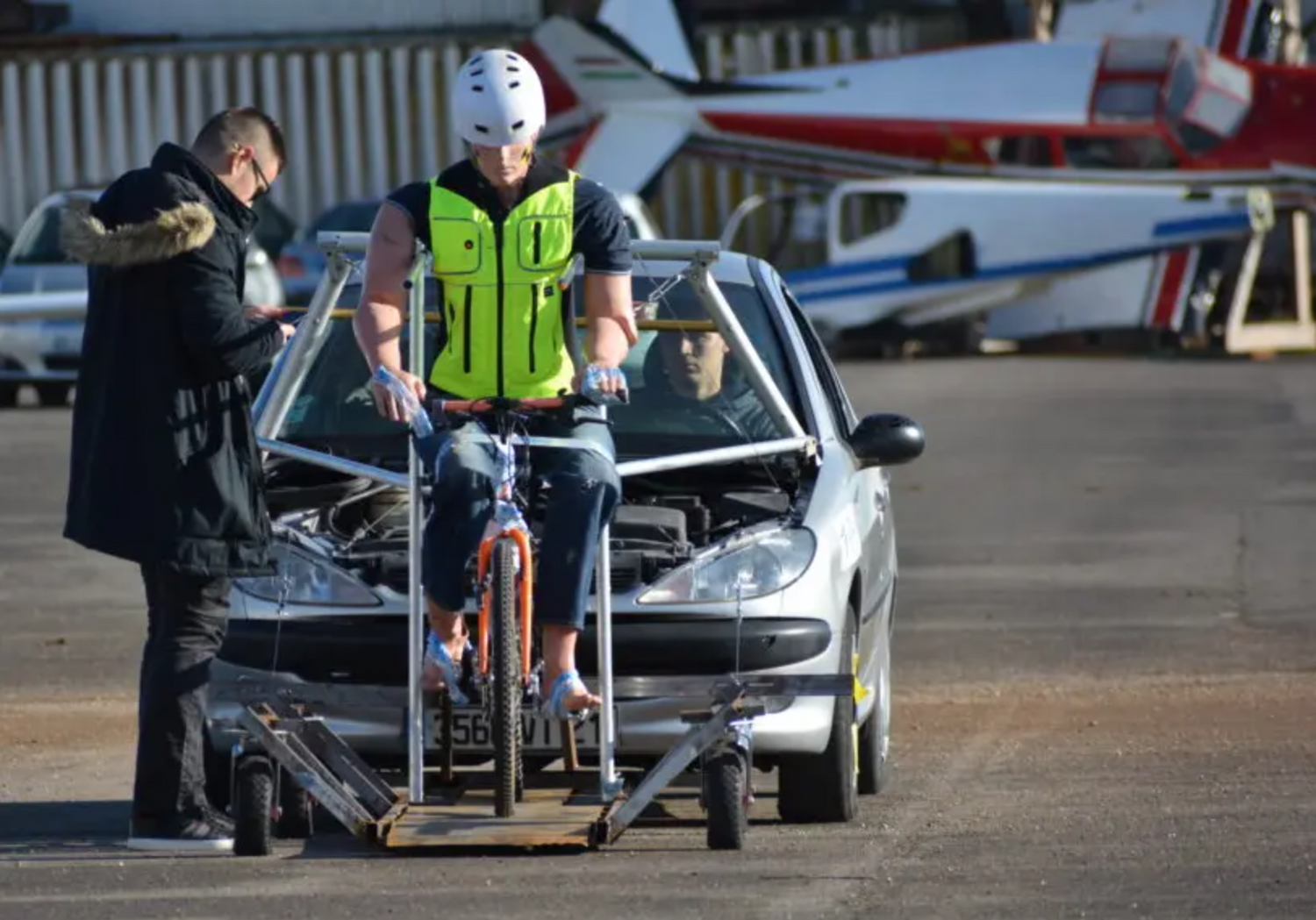 The simulation of accidents (bicycle, motorbike) allows us to validate the detection time of our electronic systems